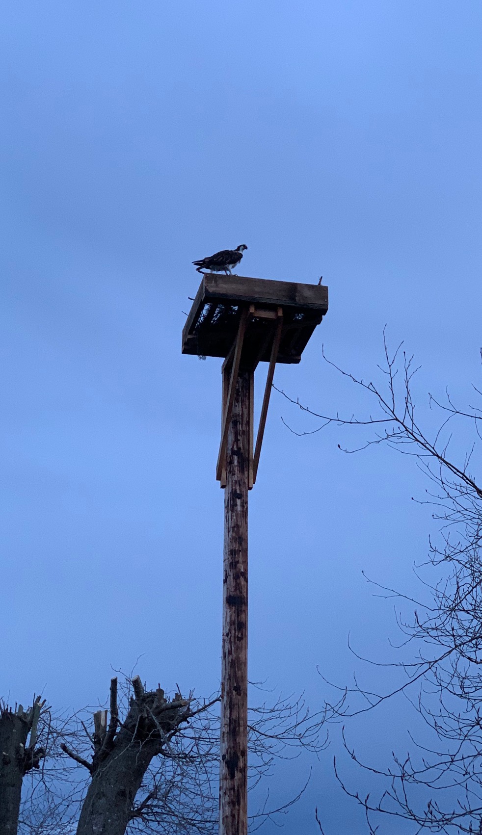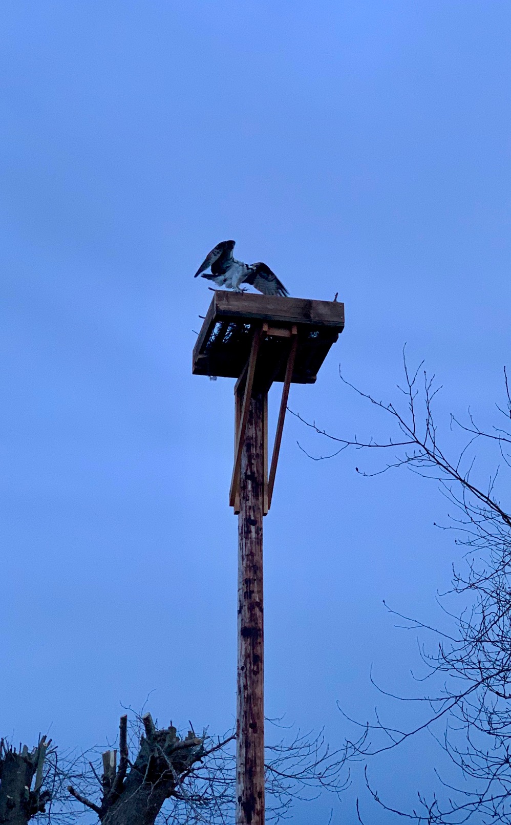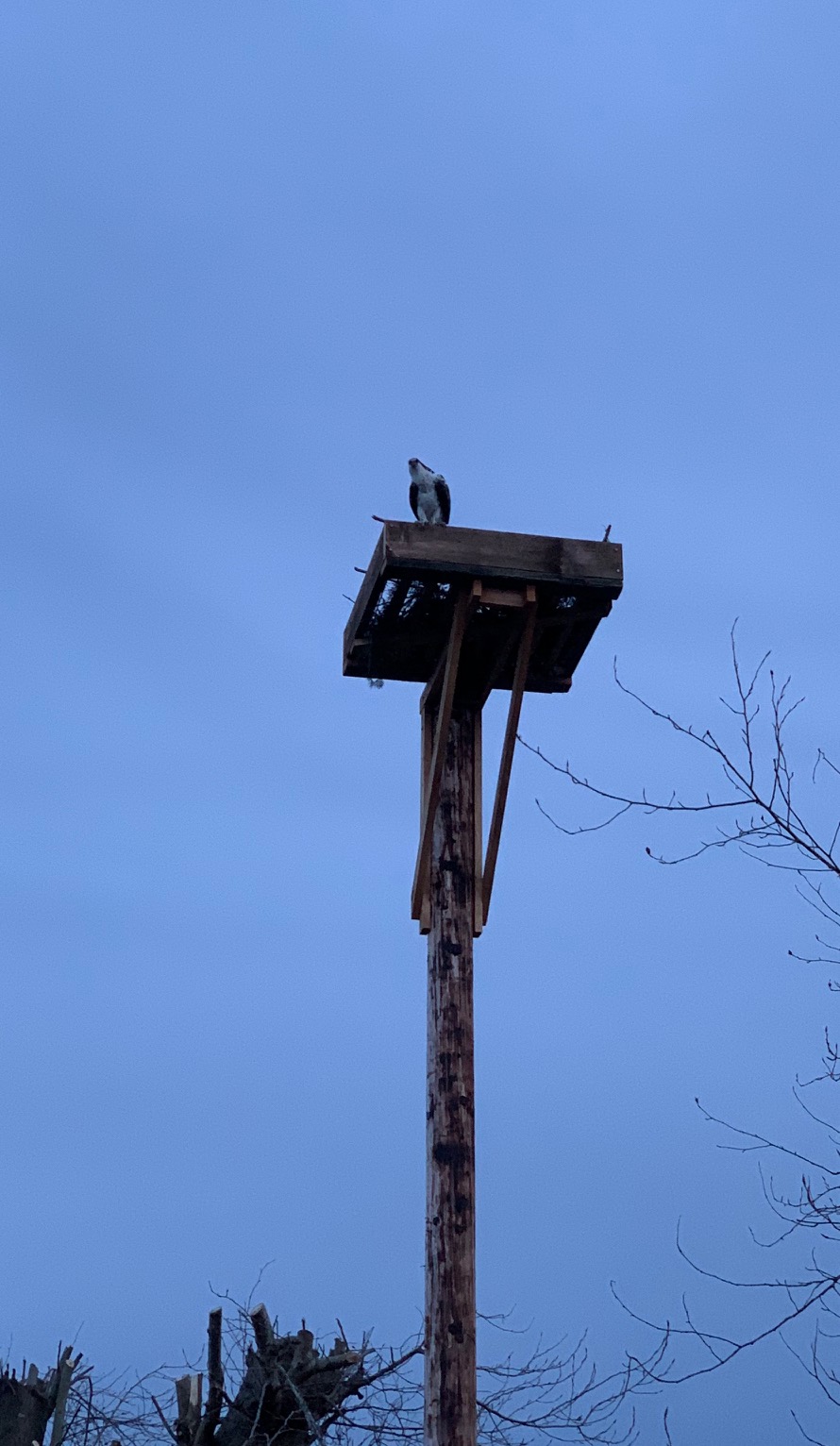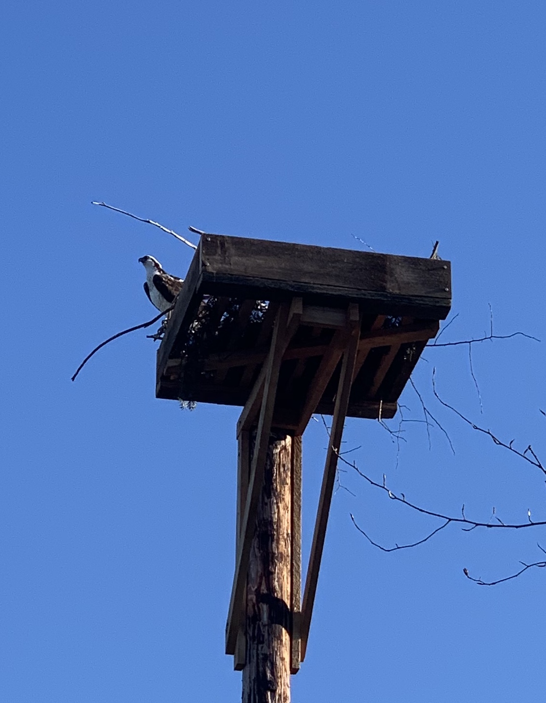 Osprey Building Nest Posted on March 30, 2019April 1, 2019 by coffeeadmin Here are a few more photos of our Osprey couple! They are adding branches to the nest by the hour. [Show as slideshow]