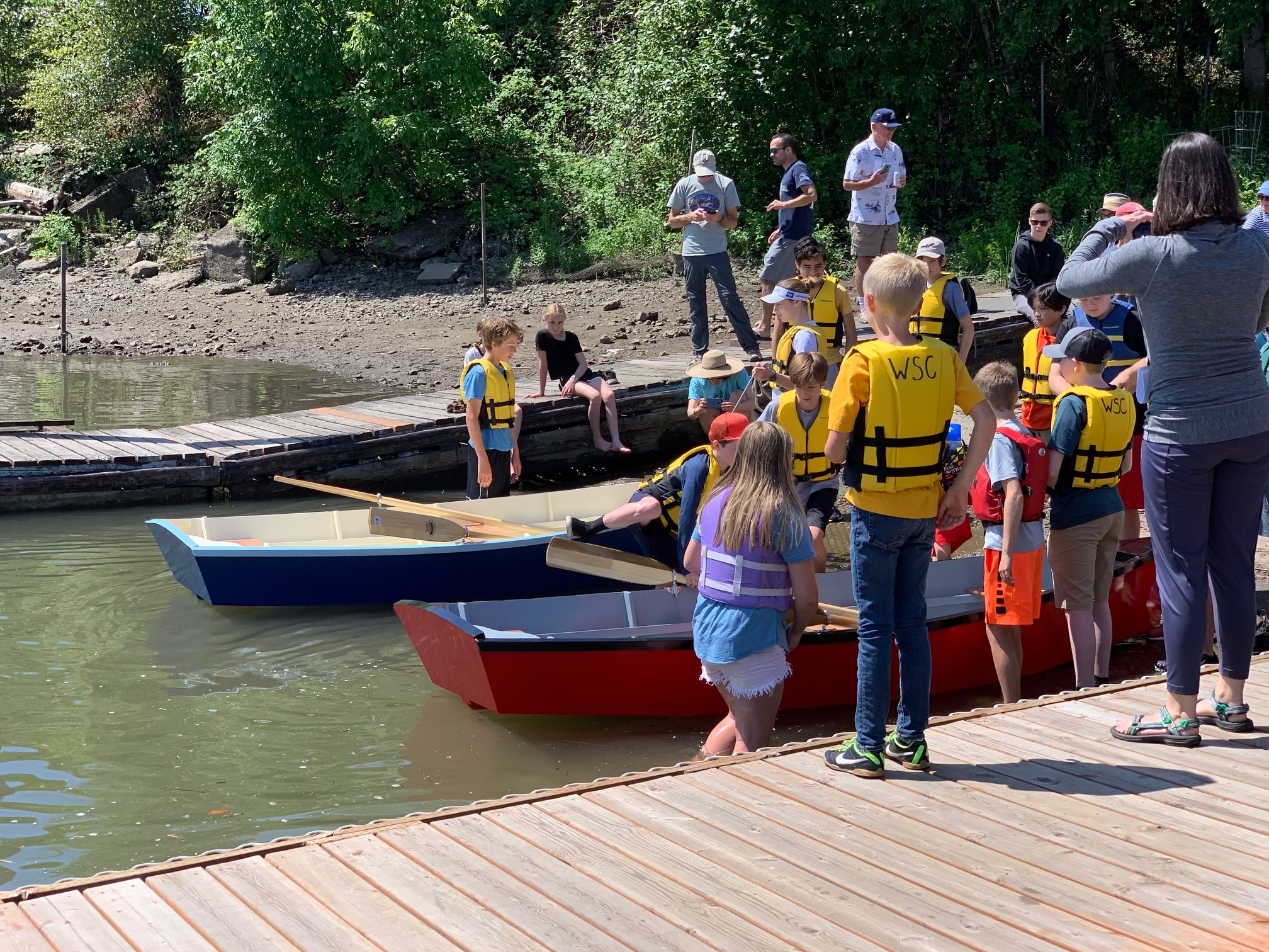 There was a group from the public school system that built two “Bevin’s Skiff’s” thru the nonprofit “Sail and Oar”. They also launched their fully painted boats.