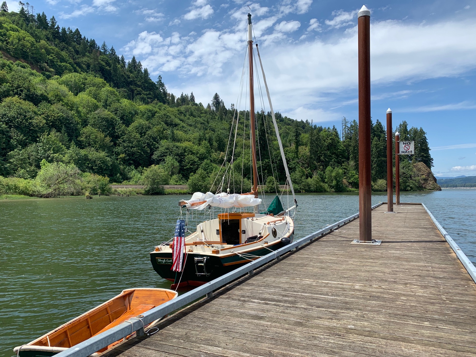 The last weekend of June, Jody and I made way 45 miles up the Columbia River and then entered the Multnomah Channel at St. Helens, Or. We cruised 18 miles up and after 11 hours tied up to spend the night at Hadley’s Landing. Early the following morning we entered the Willamette River, and 15 miles later we landed at the destination of the Boat Show, The Willamette Sailing Club!