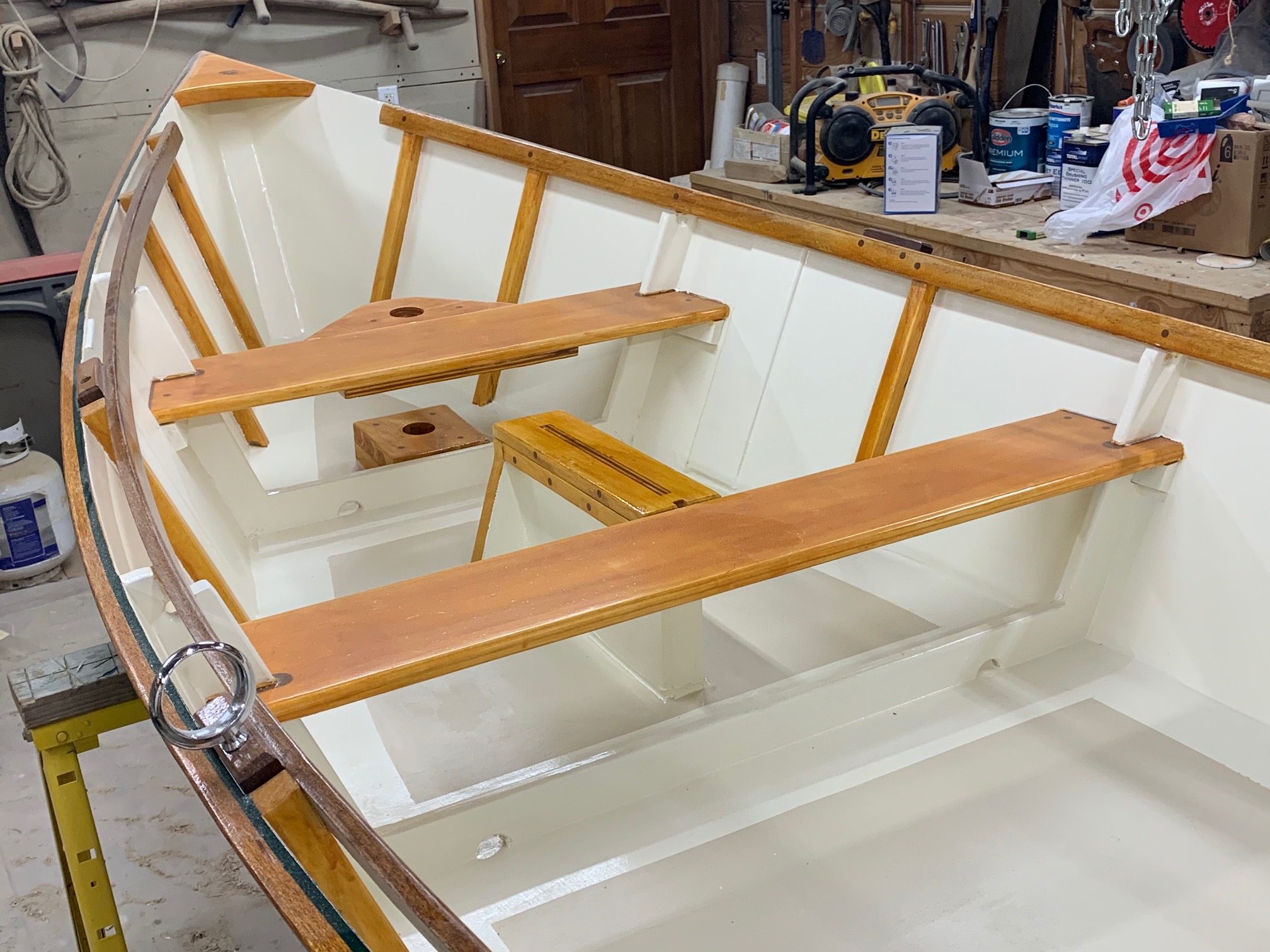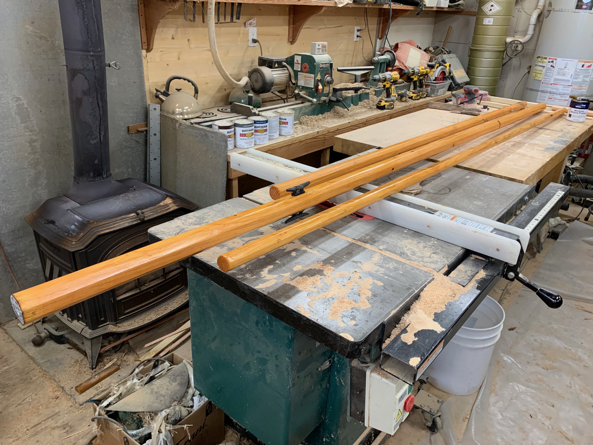 Salt Bay Skiff – Mast, Boom and Sprit Pole Complete Posted on February 14, 2020 by coffeeadmin Today the mast, boom and sprit pole are complete and ready for the sail. [Show as slideshow]